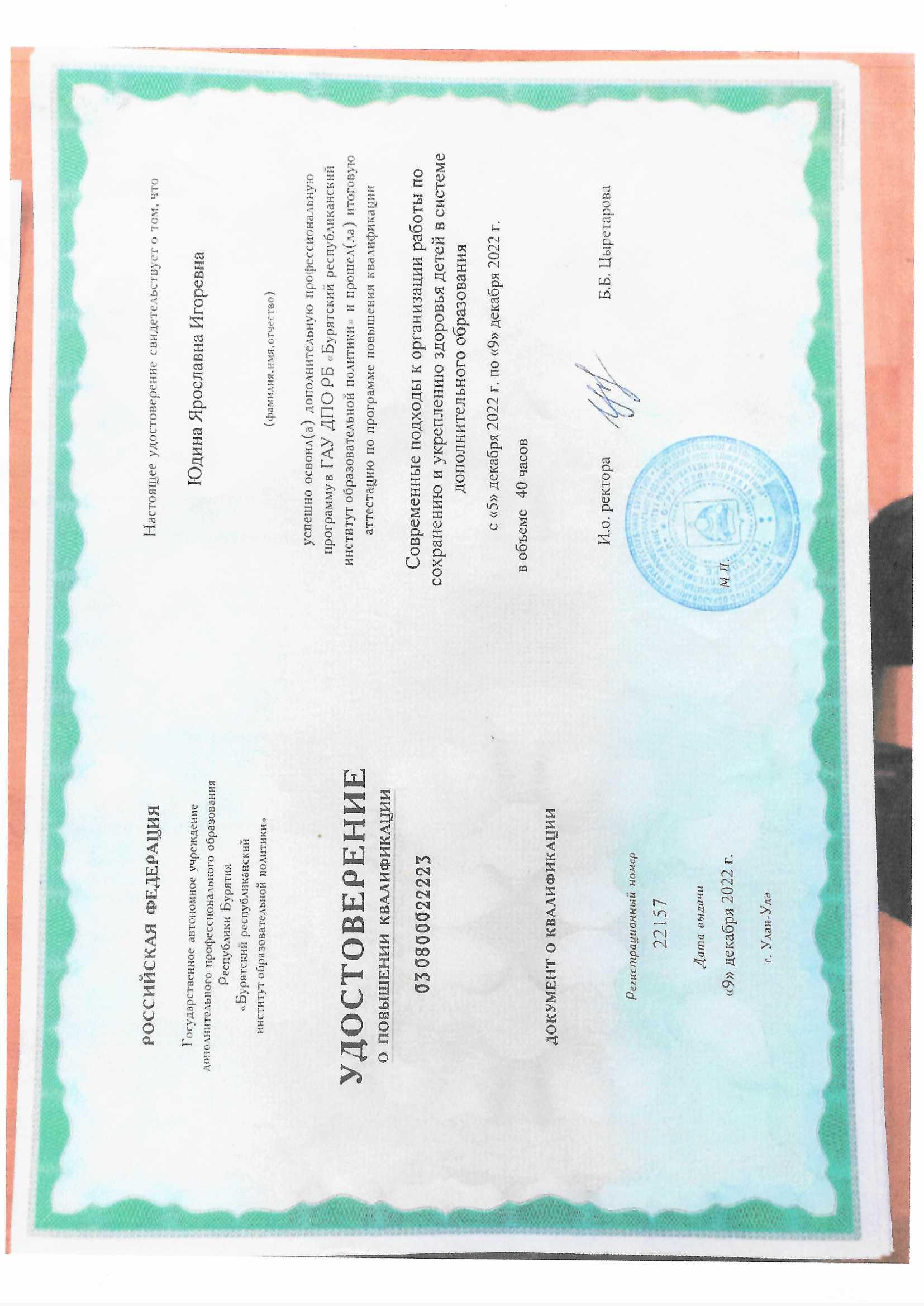 Обучение по курсу: Современные подходы к организации работы по сохранению и укреплению здоровья детей системе дополнительного образования". Документ о повышении квалификации: скачать
