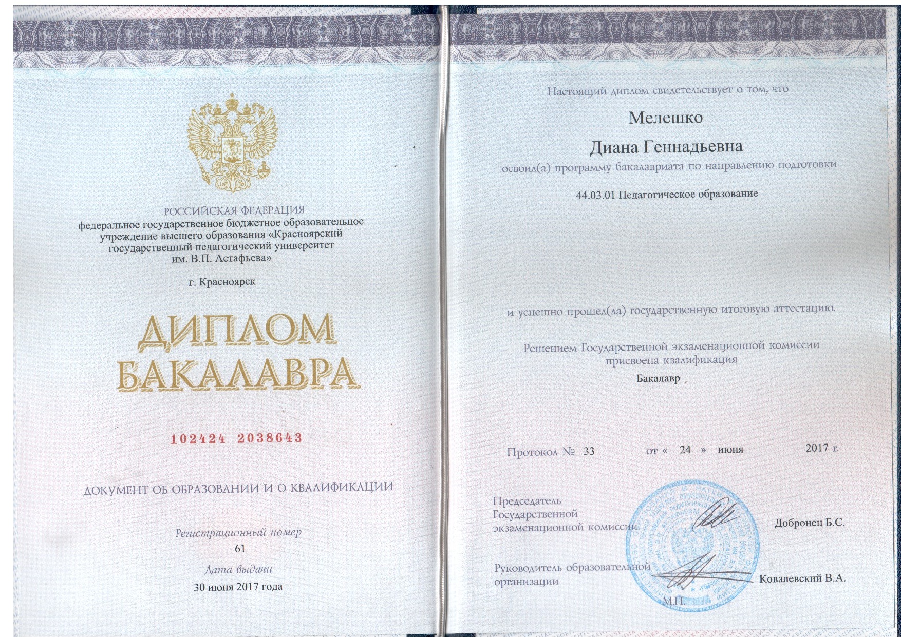 Образование по специальности: Педагогическое образование. Присвоена квалификация: Бакалавр. Документ о получении образования: скачать