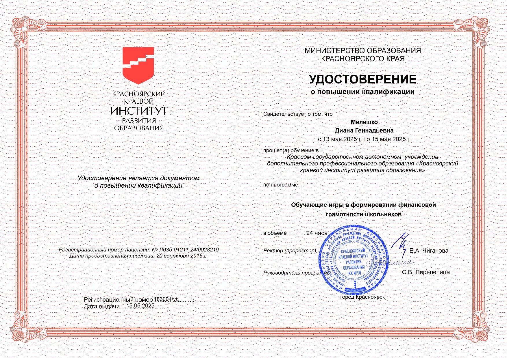 Обучение по курсу: Обучающие игры в формировании финансовой грамотности школьников. Документ о повышении квалификации: скачать