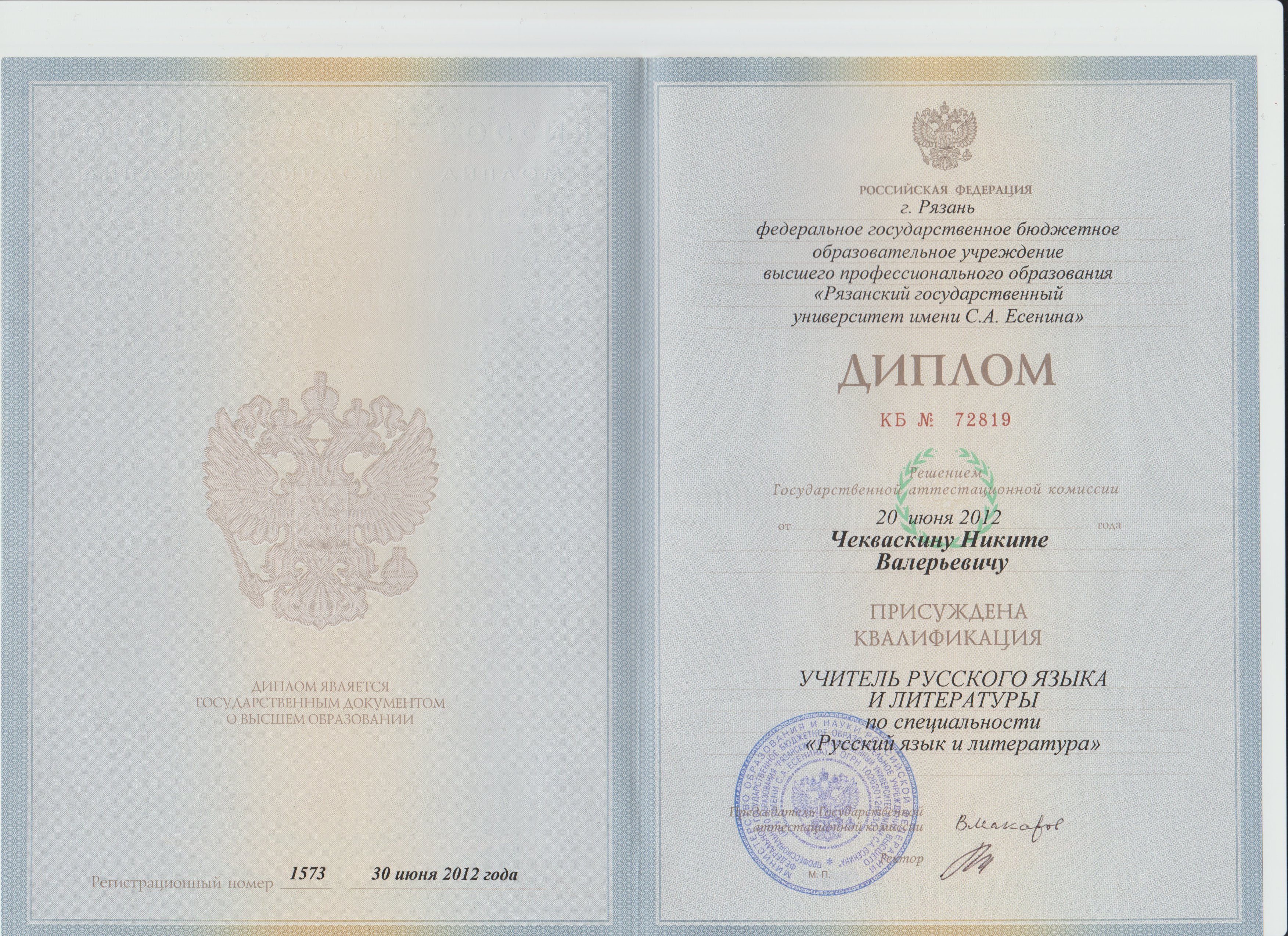 Образование по специальности: учитель русского языка и литературы. Присвоена квалификация: учитель русского языка и литературы. Документ о получении образования: скачать