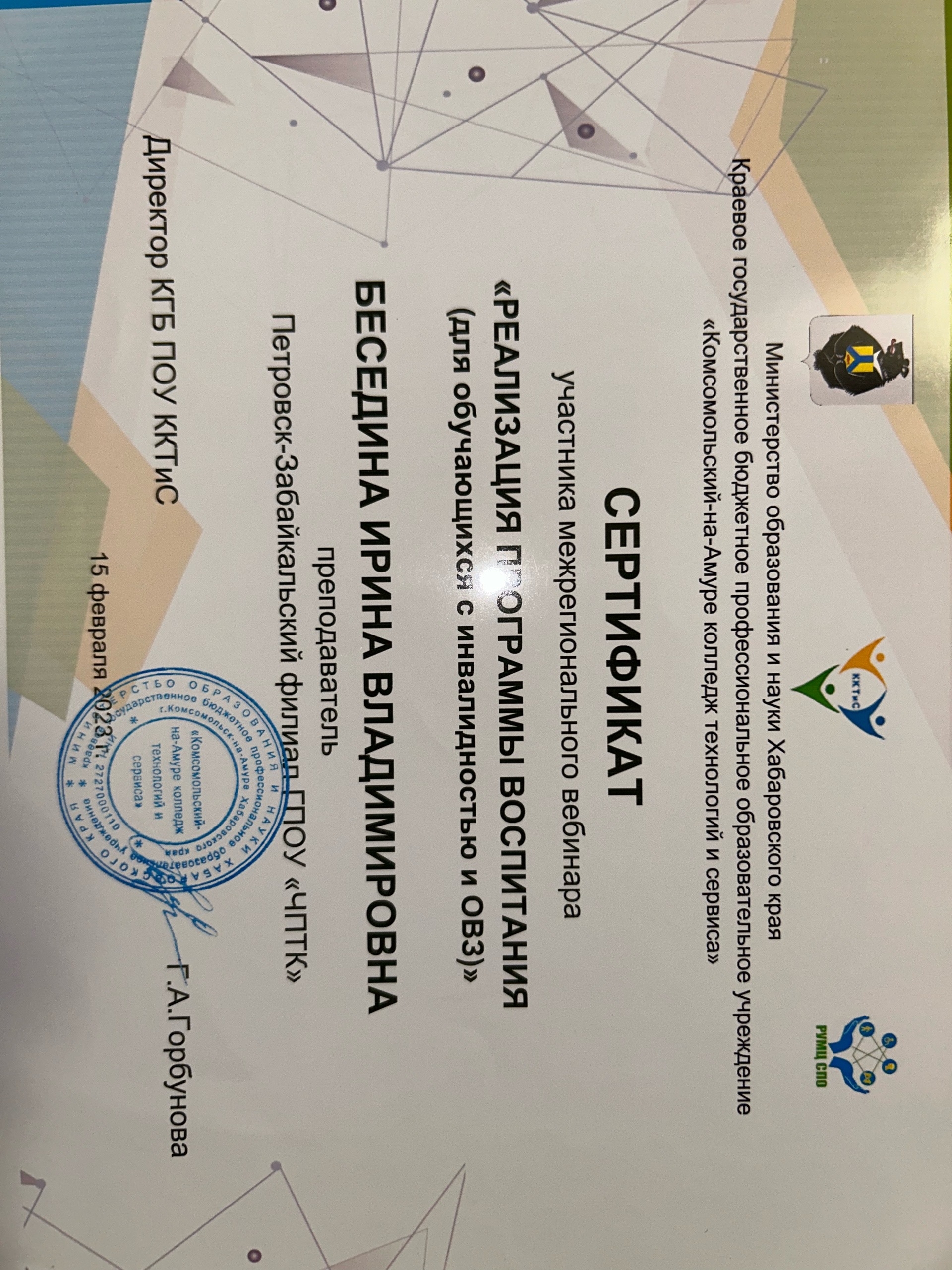 Обучение по курсу: "Реализация программы воспитания (для обучающихся с инвалидностью и ОВЗ). Документ о повышении квалификации: скачать