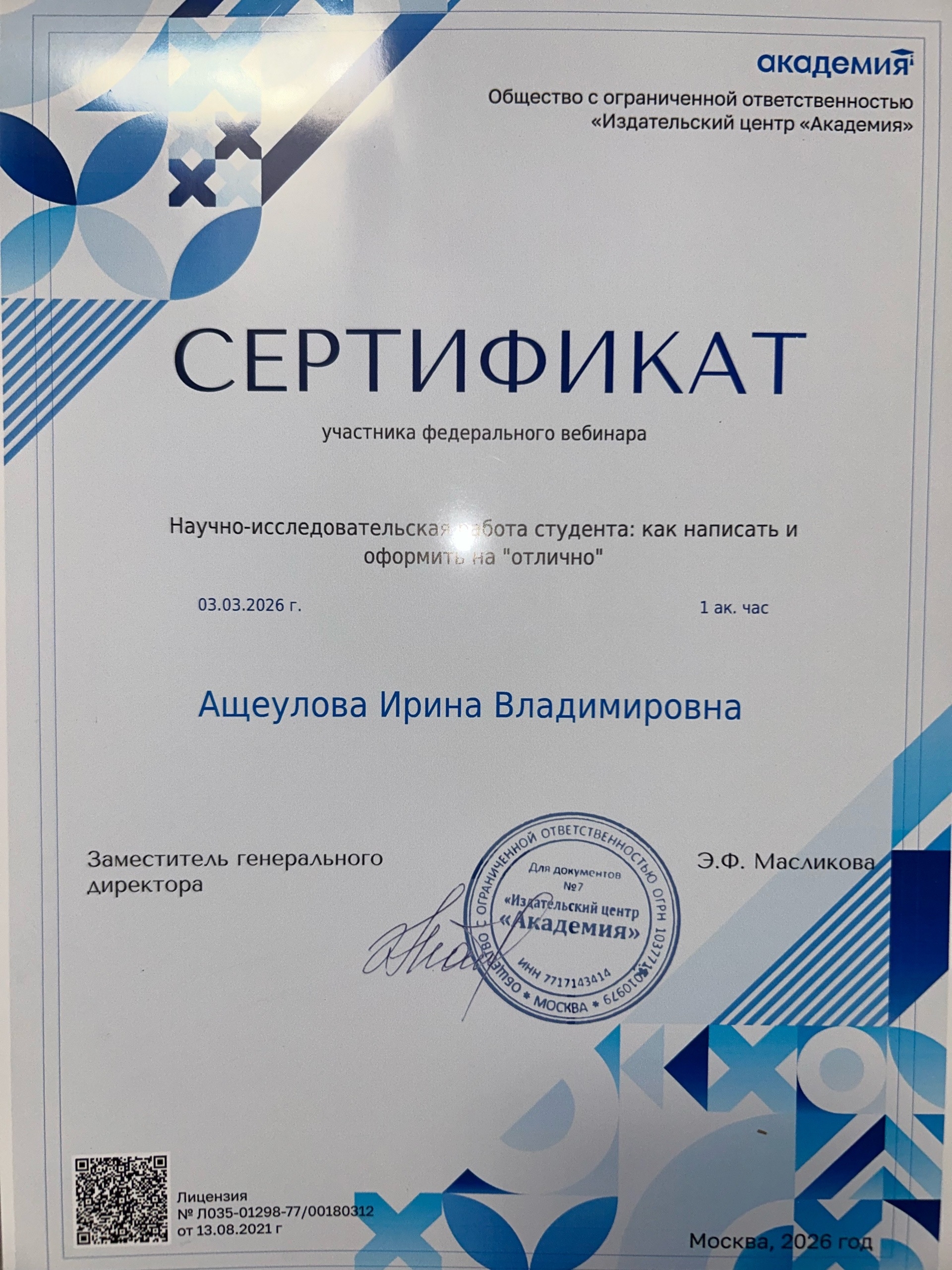 Обучение по курсу: Научно-исследовательская работа студента: как писать и оформлять на "отлично". Документ о повышении квалификации: скачать