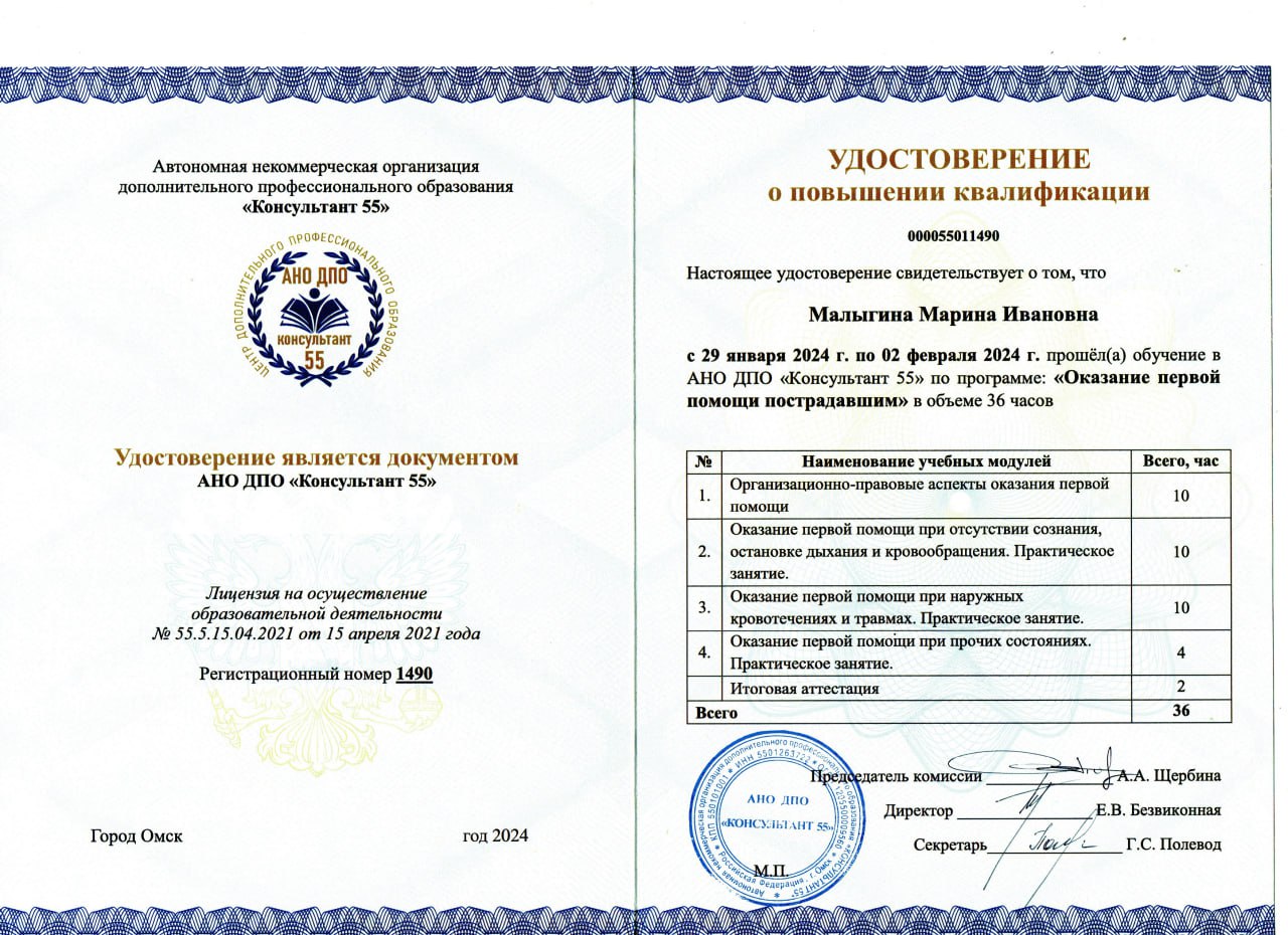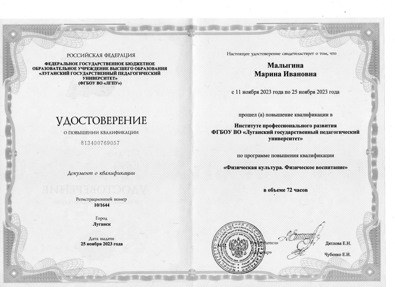 Образование по специальности: дополнительное образование. Присвоена квалификация: учитель физической культуры. Документ о получении образования: скачать