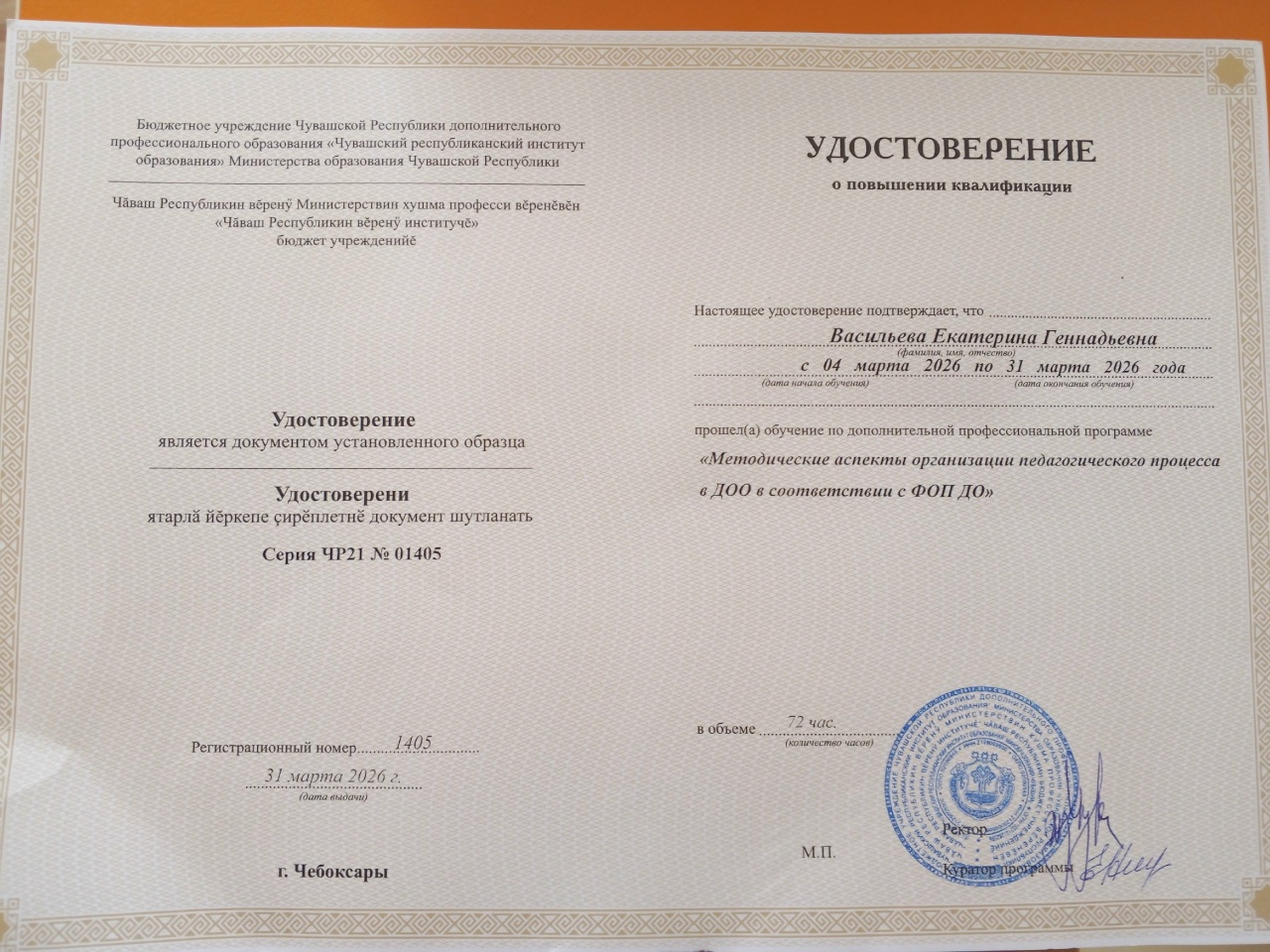 Обучение по курсу: "Методические аспекты организации педагогического процесса в ДОО в соответствии с ФОП ДО. Документ о повышении квалификации: скачать