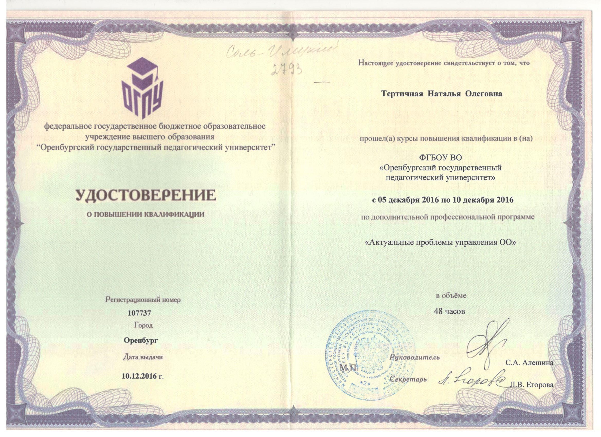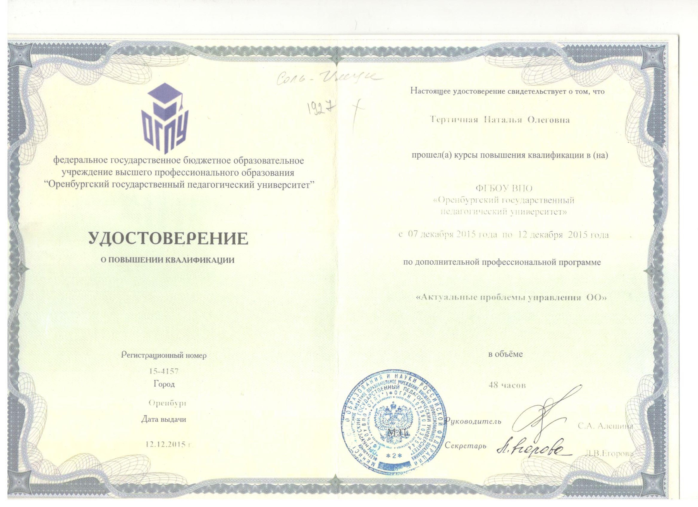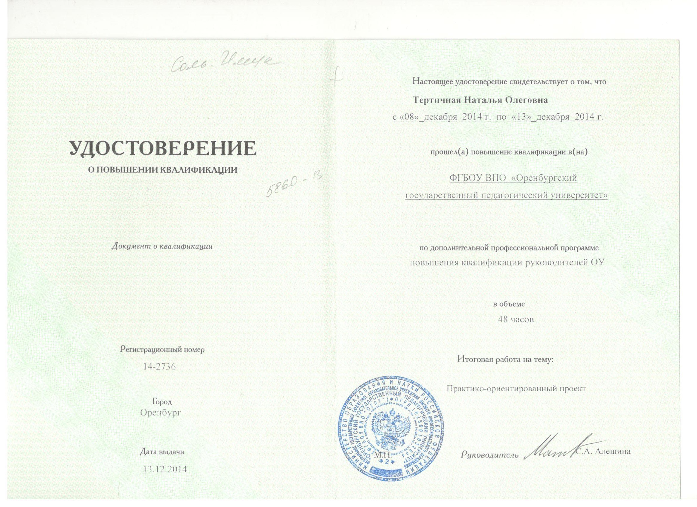 Обучение по курсу: Повышение квалификации руководителей ОУ. Документ о повышении квалификации: скачать