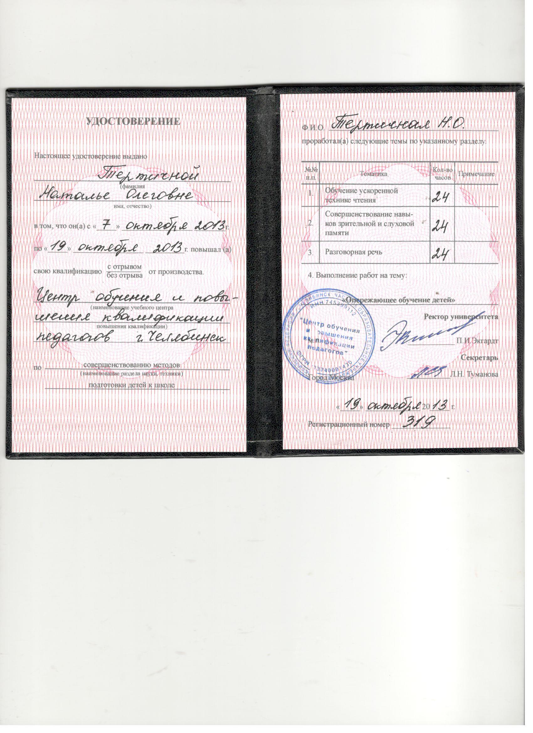 Обучение по курсу: Совешенствование методов подготовки детей к школе. Документ о повышении квалификации: скачать