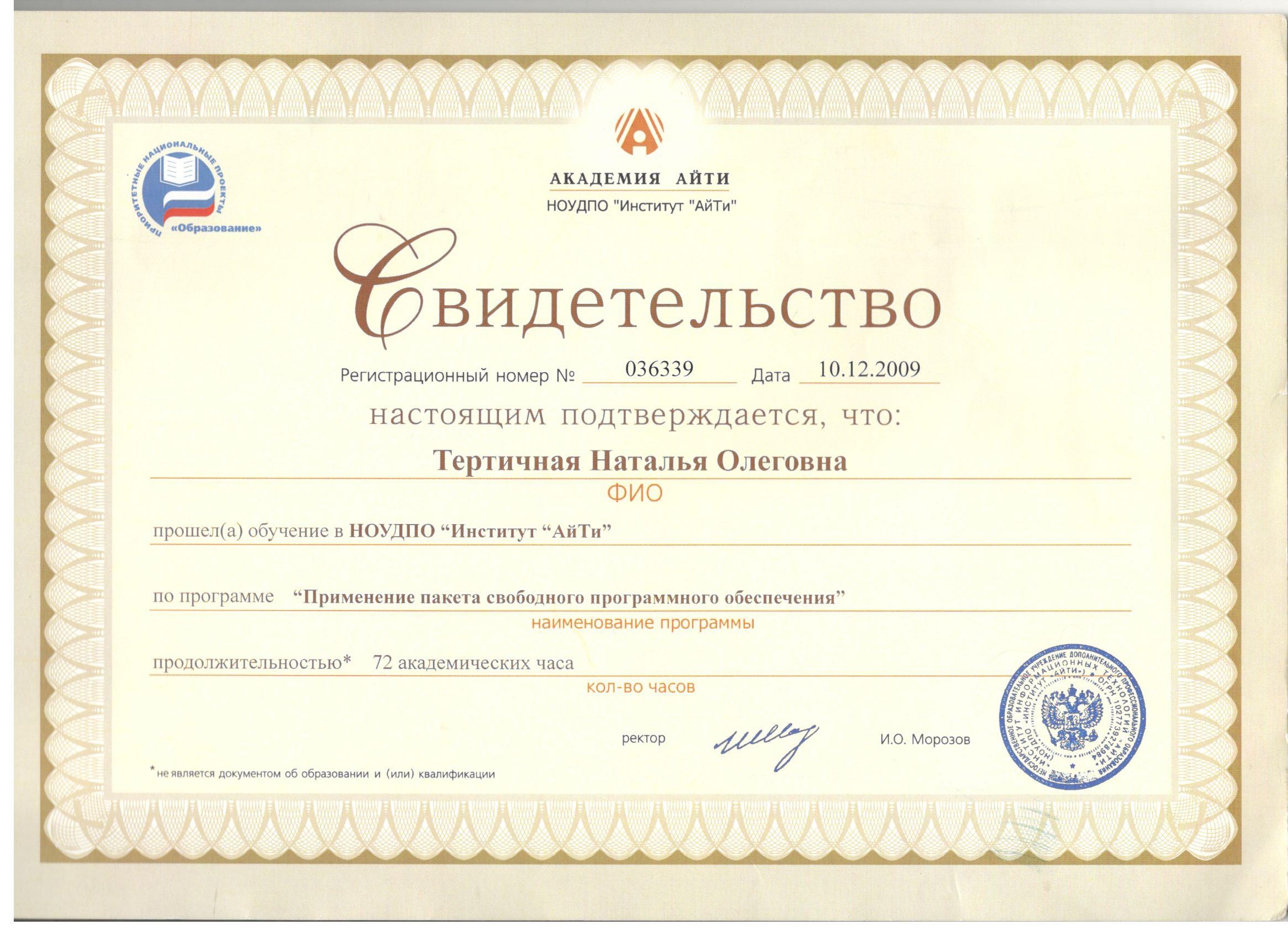 Обучение по курсу: Применение пакета свободного программного обеспечения. Документ о повышении квалификации: скачать
