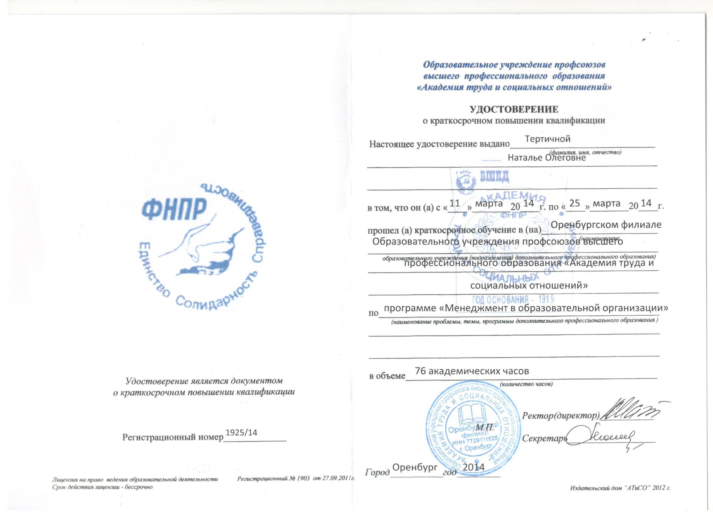 Обучение по курсу: Менеджмент в образовательной организации. Документ о повышении квалификации: скачать
