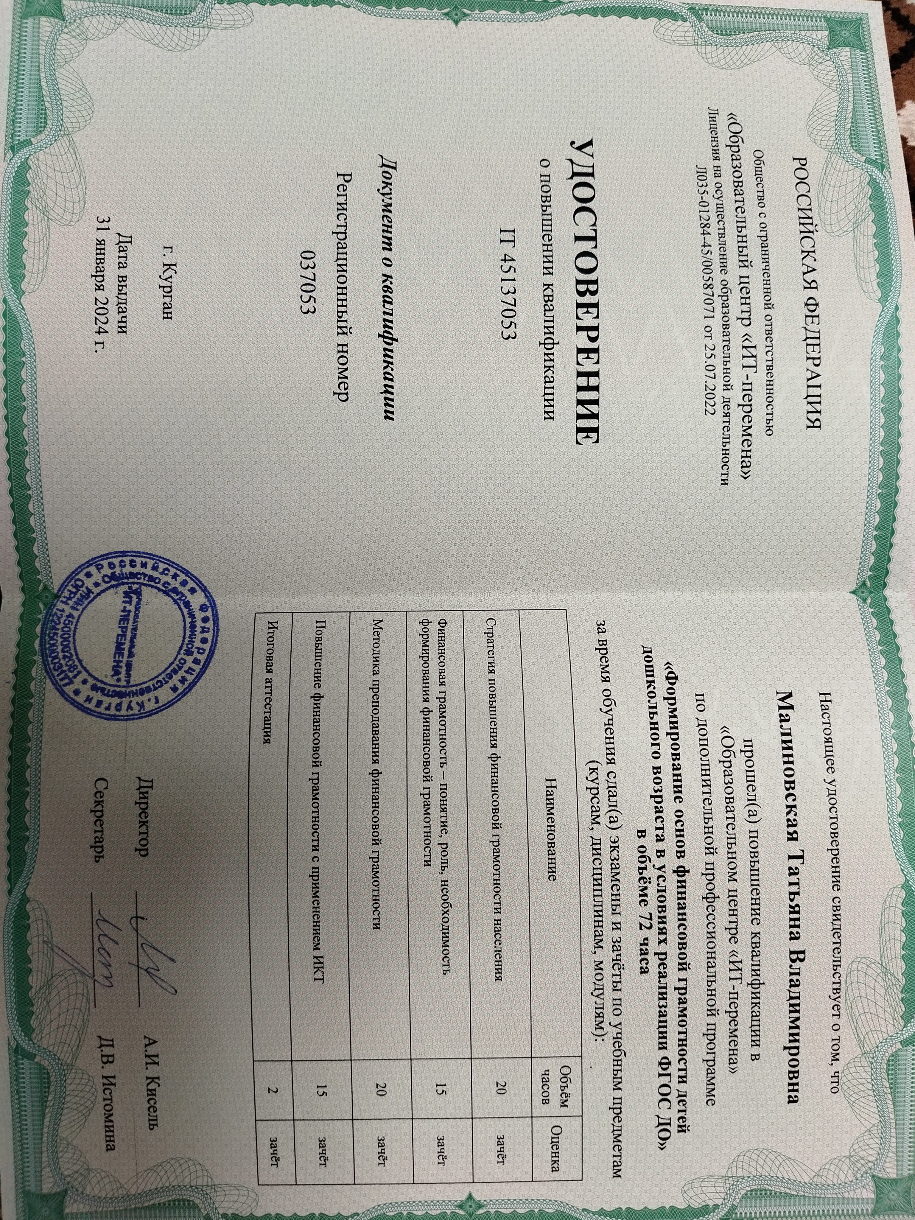 Обучение по курсу: Формирование основ финансовой грамотности детей дошкольного возраста в условиях реализации ФГОС ДО. Документ о повышении квалификации: скачать