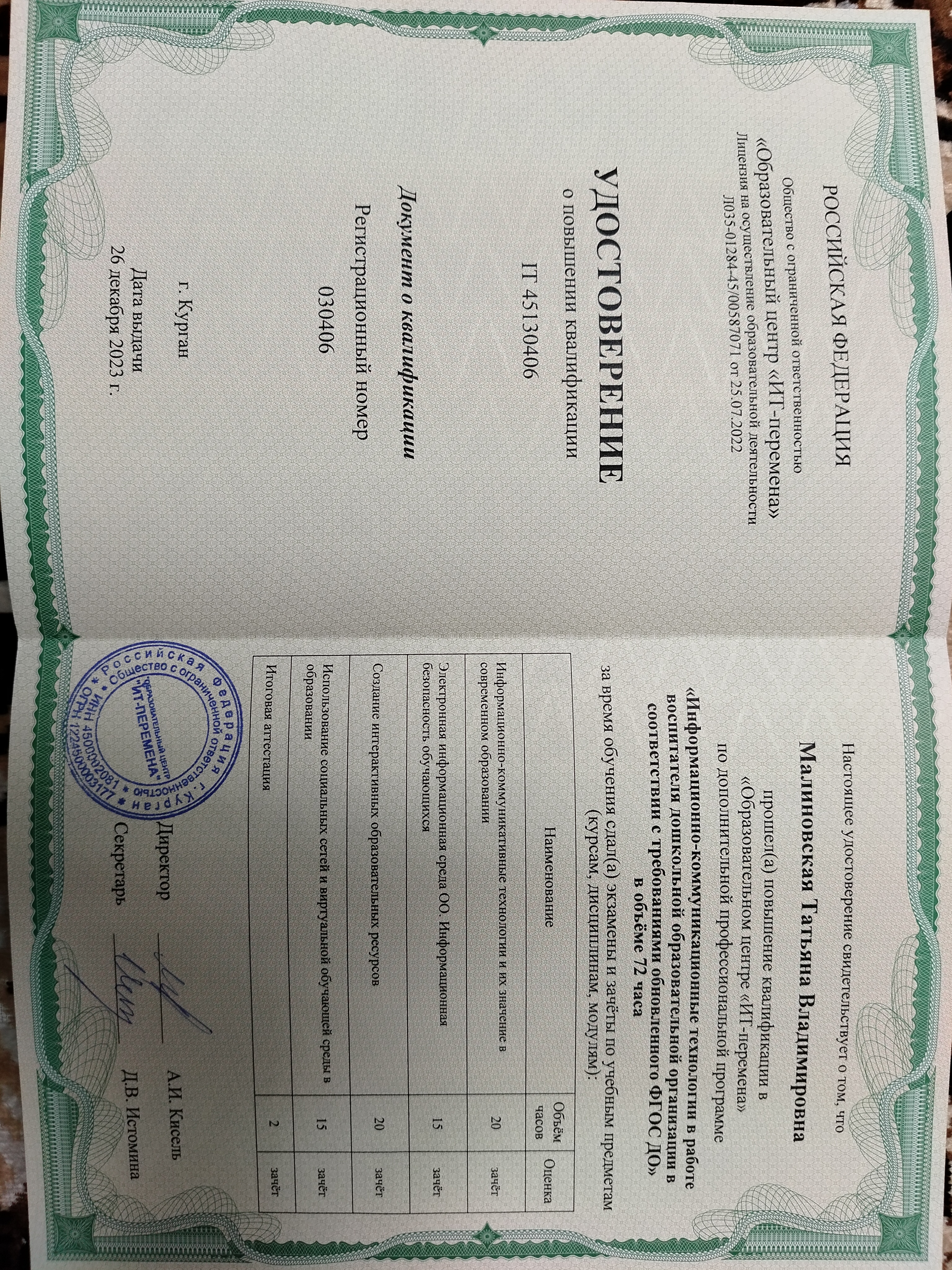 Обучение по курсу: Информационно- коммуникационные технологии в работе воспитателя ДО в соответствии с требованиями обновлённого ФГОС ДО. Документ о повышении квалификации: скачать