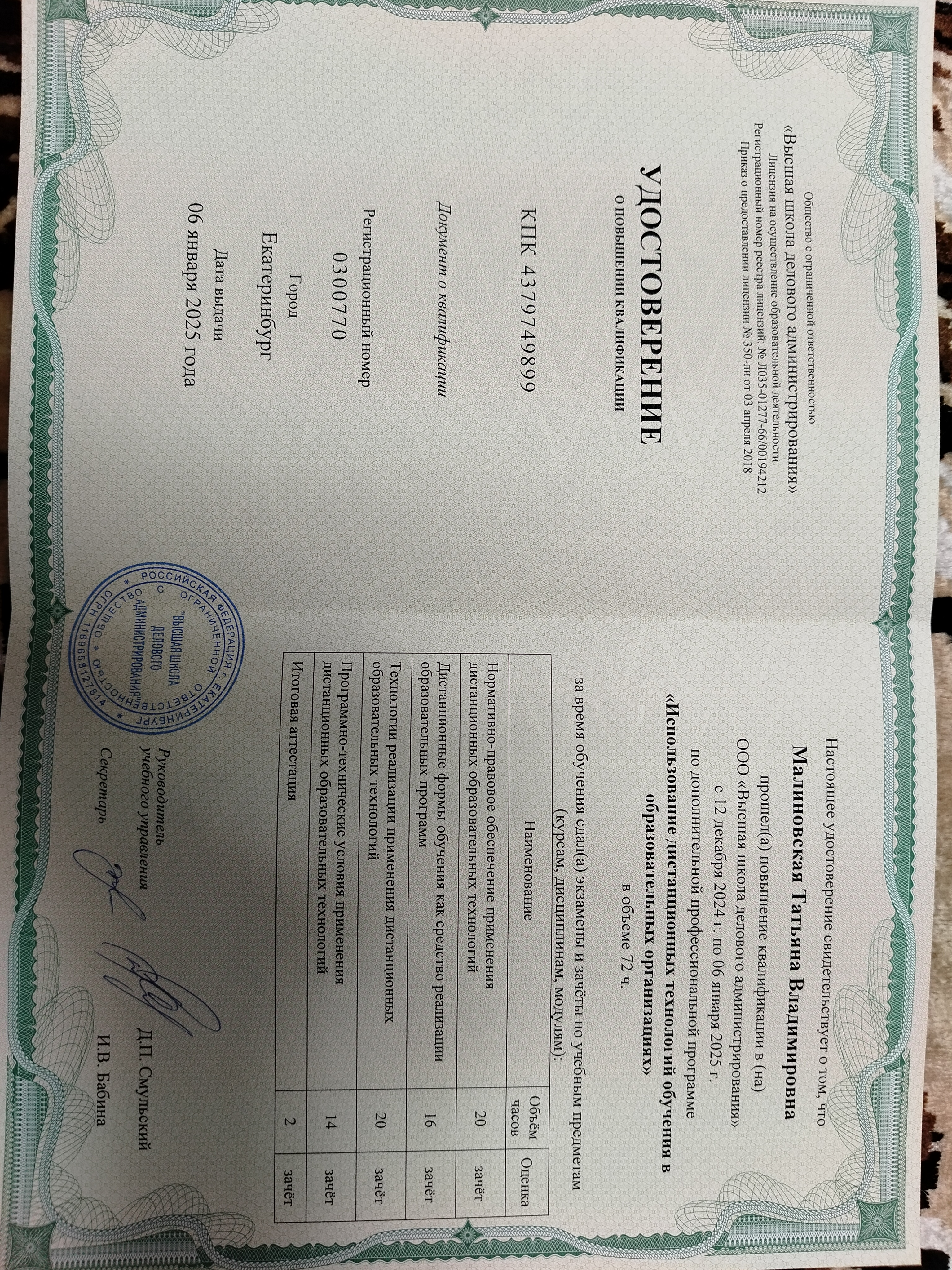 Обучение по курсу: Использование дистанционных технологий обучения в образовательных организациях. Документ о повышении квалификации: скачать