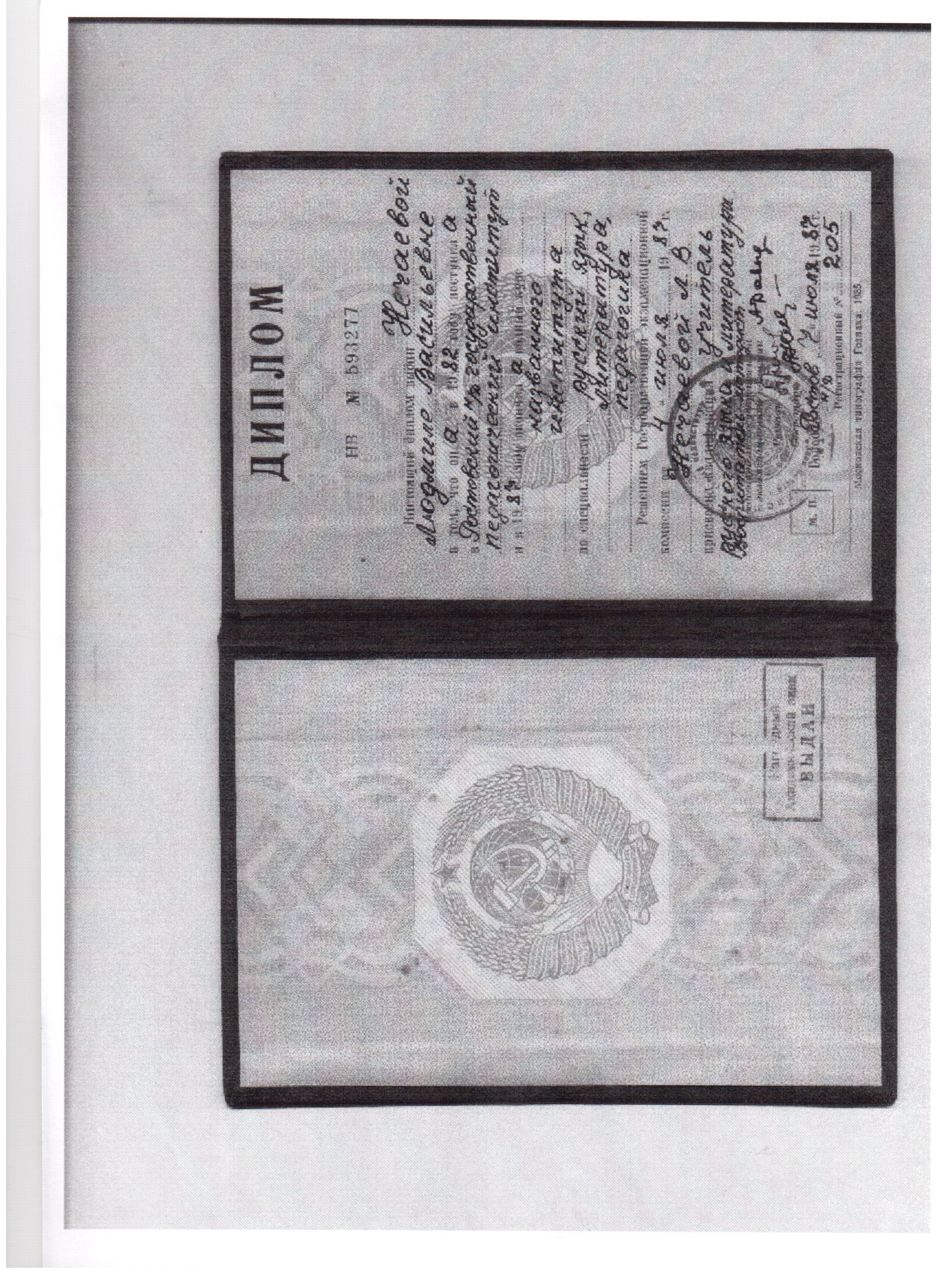 Образование по специальности: Русский язык и литература. Педагогика. Присвоена квалификация: Учитель русского языка и литературы. Воспитатель -методист. Документ о получении образования: скачать